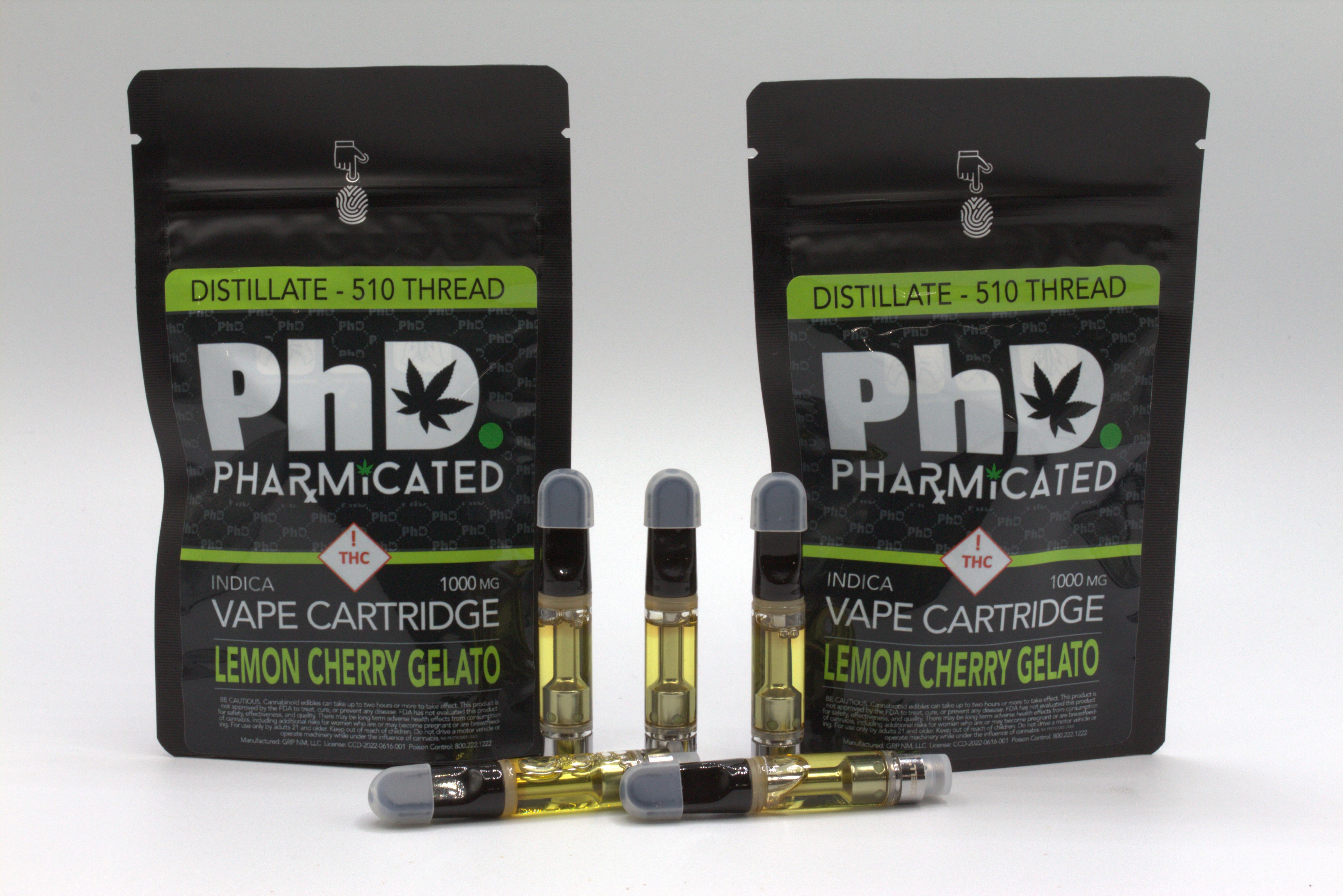 Pharmicated 510 Thread Vape Cart - 1000 mg - Lemon Cherry Gelato (Case Size: 5 Each) (I)